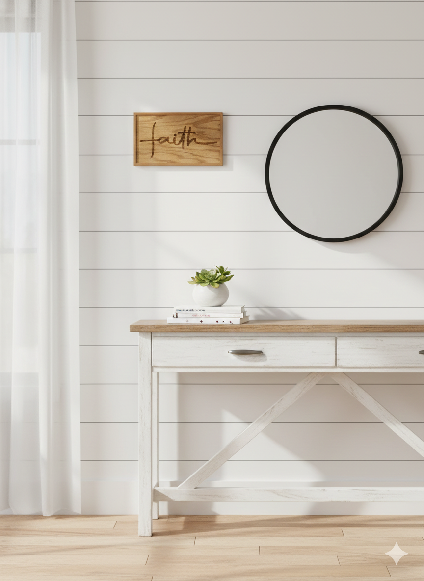 Sometimes, one word is all you need. This beautiful sign features the simple, profound statement: "faith". It is a powerful, elegant reminder to trust in God's plan, especially when the path ahead is unclear. A perfect cornerstone piece for any room designed for peace and reflection.