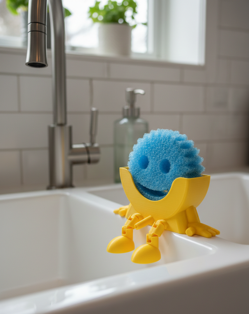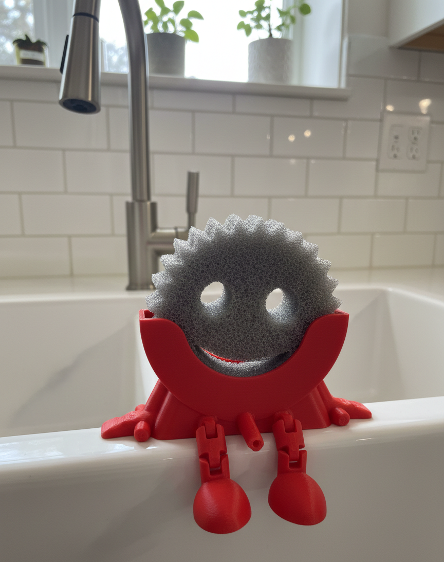 Tired of your Scrub Daddy sitting in a puddle of old water? Give your favorite scrubber a seat of honor with this custom-designed holder. Designed specifically for circular sponges like the Scrub Daddy®, this little guy adds a touch of personality and a lot of functionality to your kitchen sink.