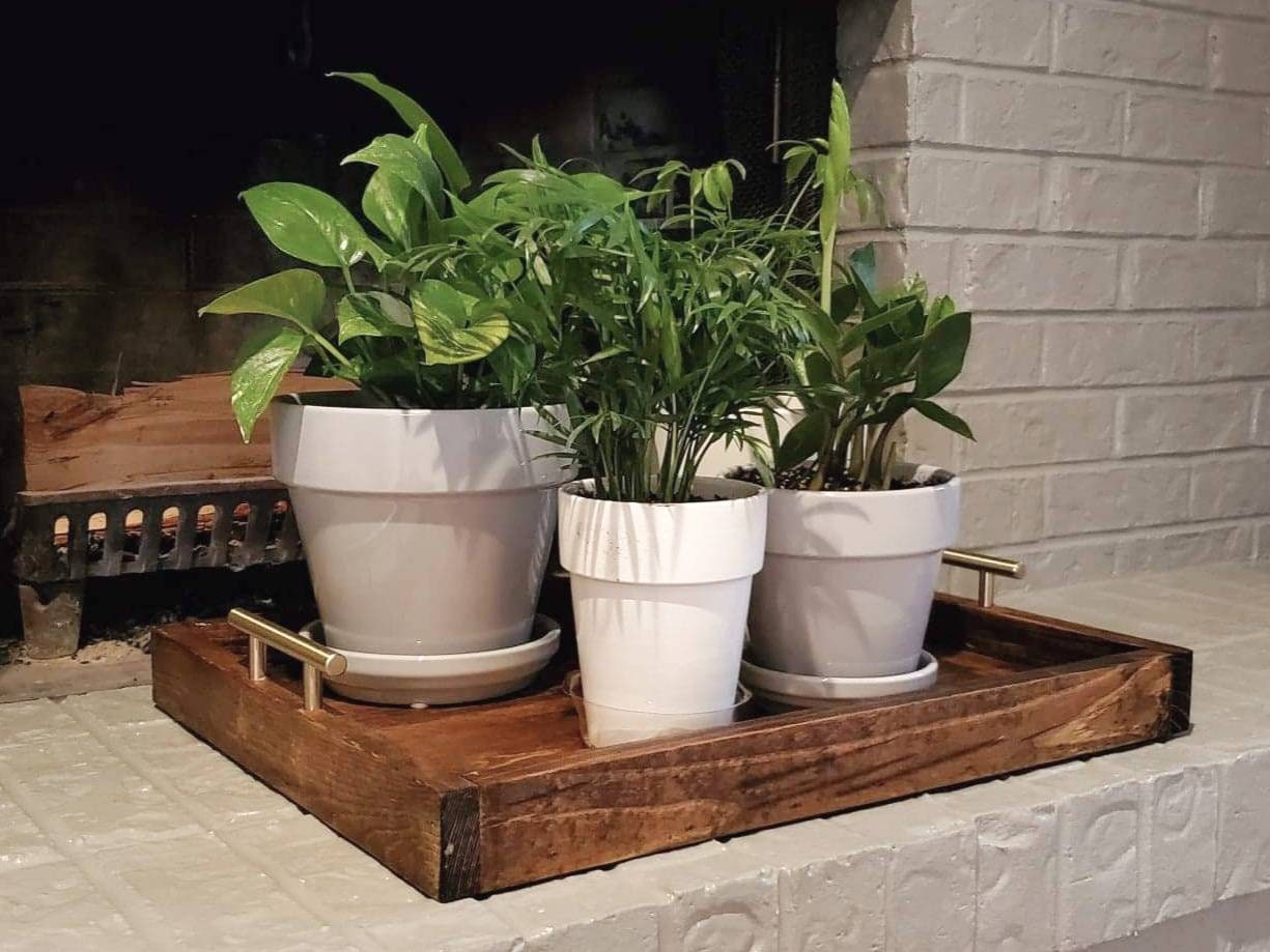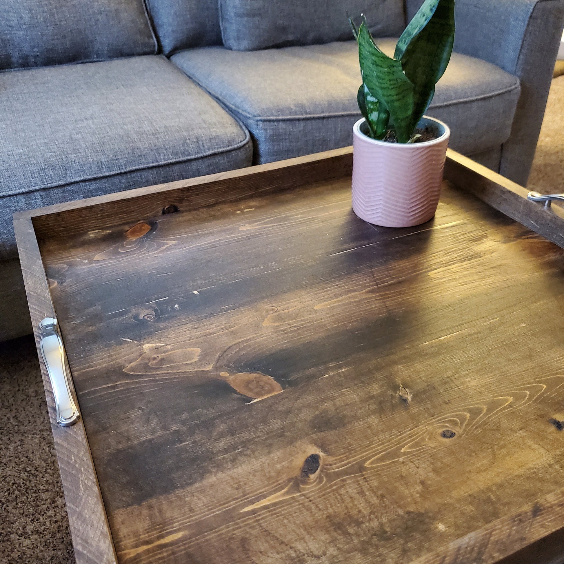 This handmade wooden tray will compliment any farm-style and modern décor. Looks fantastic when set on an ottoman or table. It will create a remarkable detail for your guests, sure to be noticed by those you welcome into your home. Suitable for home furniture, home gardening, and home organization. Your loved ones will be thrilled if you surprise them with some snacks or breakfast on this beautiful tray. The base of each tray is sealed at all joints to help protect your furniture against spills. We also seal the tray with a water-based polycrylic. This will help to protect the tray from heat and water damage. Just wipe with a damp cloth to clean.